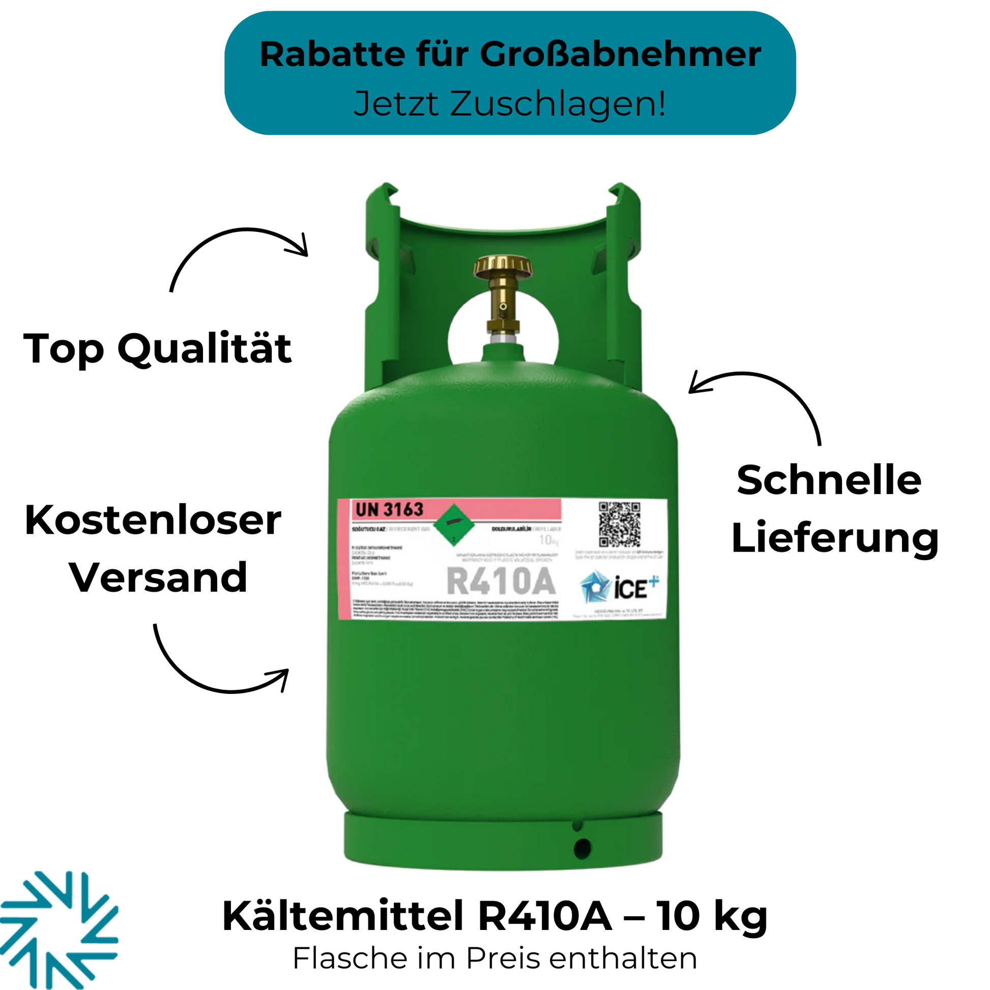 R410A ist ein zweikomponentiges HFC-Gemisch (R32 + R125 im Verhältnis 50/50).