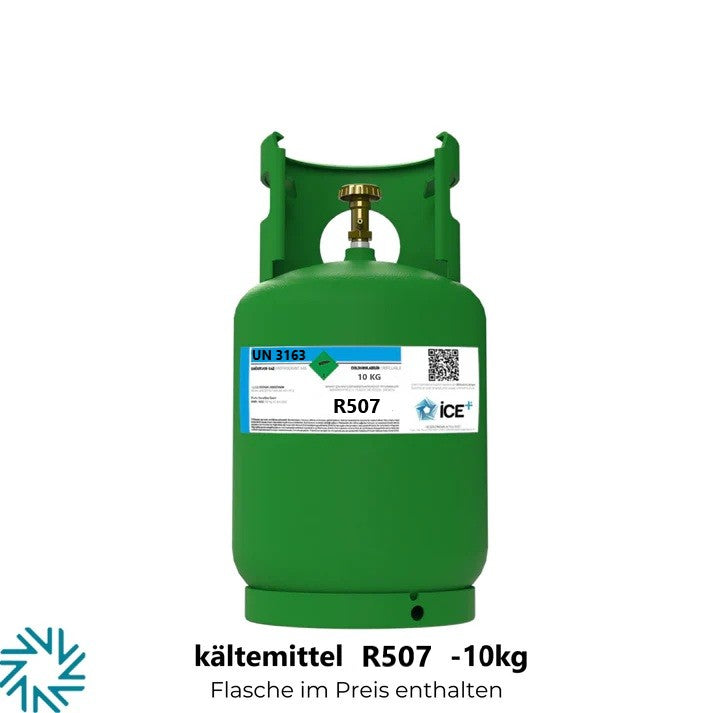 Das Kältemittel R507 ist ein HFC (Fluorkohlenwasserstoff)-Gas, das aus einer Mischung von 50 % R125 und 50 % R143a besteht. Aufgrund seiner ozonunschädlichen Eigenschaften (ODP=0) wurde es insbesondere als Alternative zu R502 entwickelt. Es wird häufig in gewerblichen und industriellen Kühlanwendungen eingesetzt.